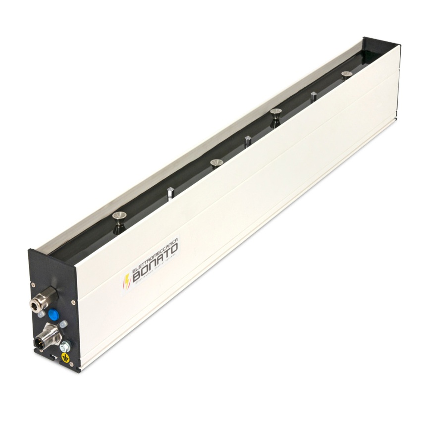 Akıllı Deşarj Çubuğu IDB-35-S (çarpmayan), çok uzun mesafelerdeki yüzeylerin statik elektriği alması için tasarlanmıştır. Çubuk tarafından üretilen iyonlar, hava basınçlı nozullar sayesinde 2500 mm mesafeye kadar statik yükleri ortadan kaldırabilir.
